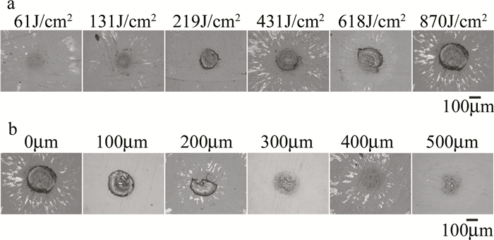 a—在不同入射激光能量密度下b—在不同靶-基材料距離下
